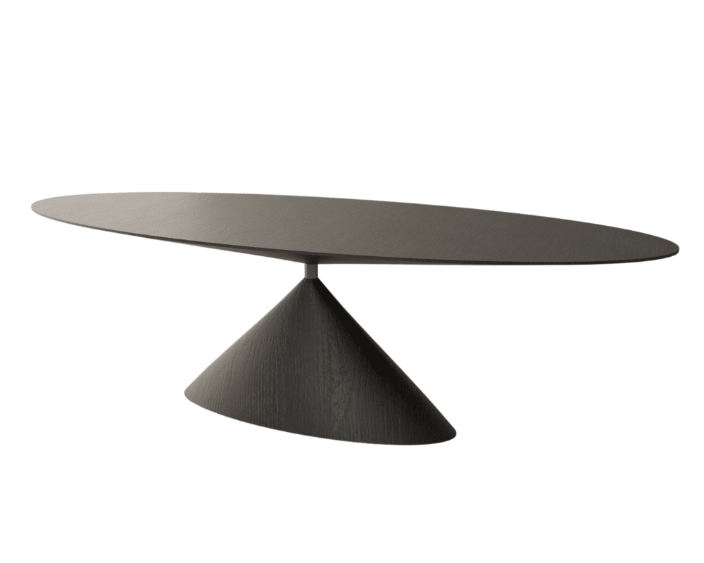 A mesa de jantar Pião Elíptica tem um design minimalista, destacando-se pela sua forma única. A combinação de simplicidade e elegância torna a mesa uma escolha atraente para seu ambiente.