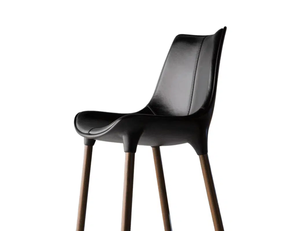 Assento estofado em Couro Natural; Tecido Fornecido;