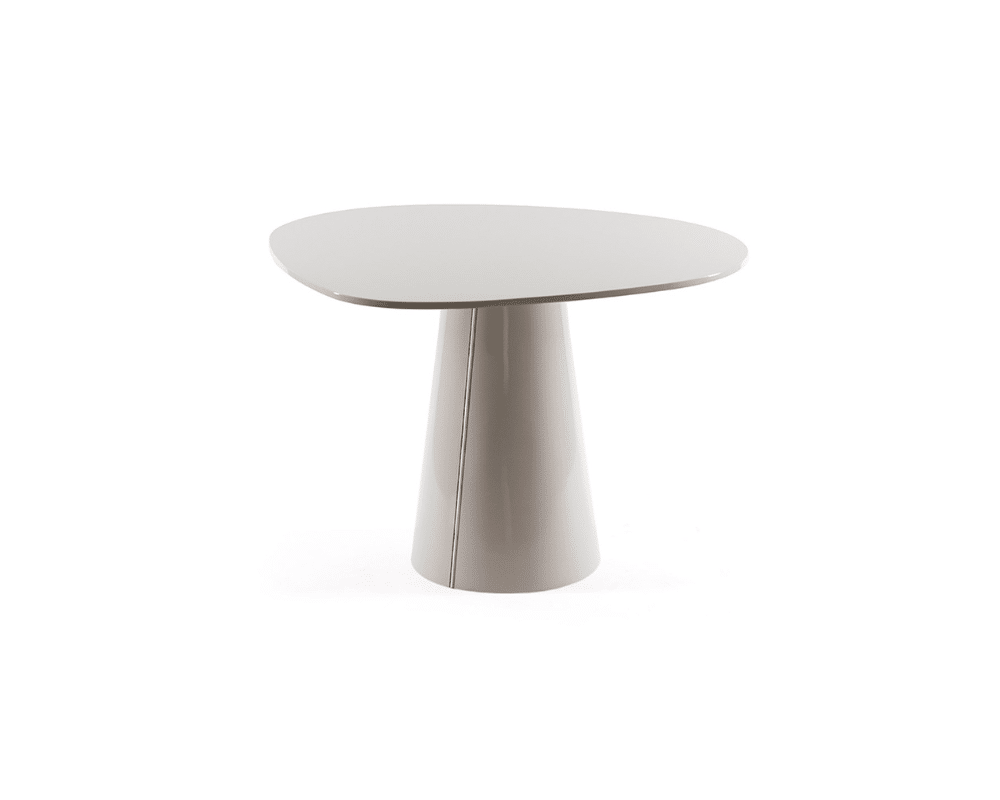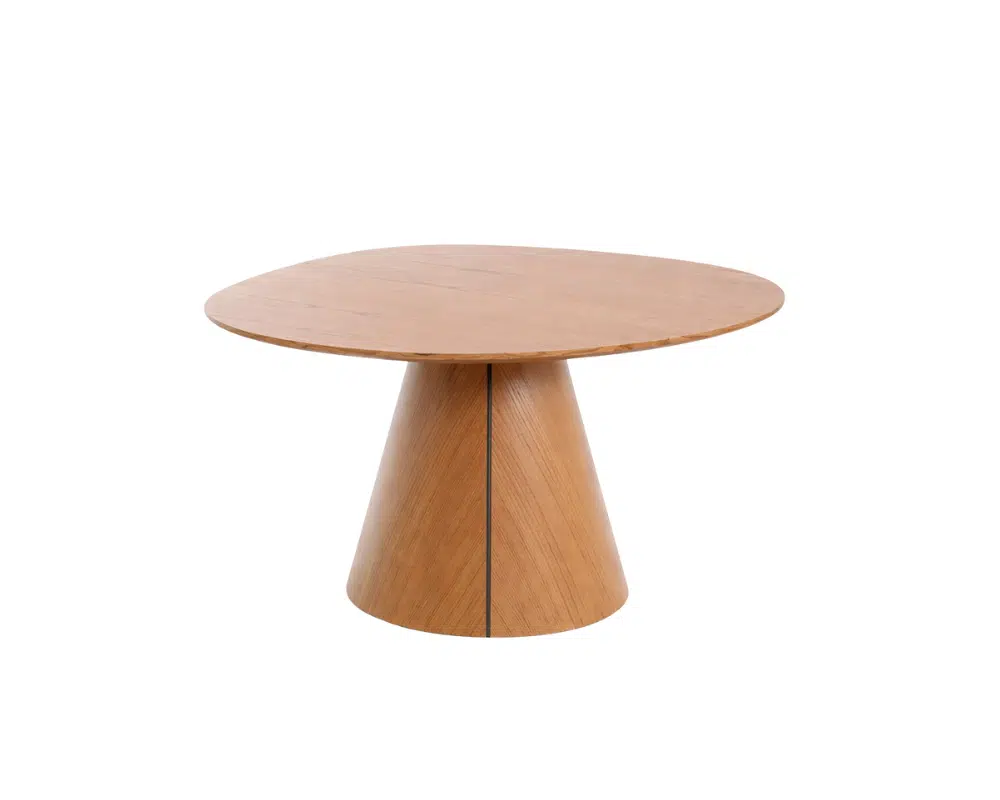 MDF laqueado ou revestido com lâmina natural de madeira. Detalhe em aço carbono na base. Opção de vidro sobreposto ao tampo.