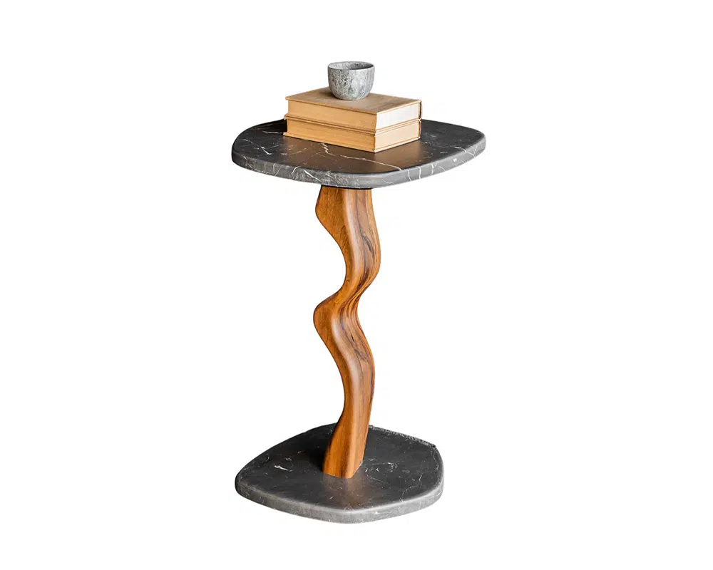 Além de sua função prática como mesa lateral, este móvel também serve como uma peça decorativa, capaz de harmonizar com diversos estilos de decoração.